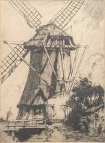 Hollandse School: 'Molen', droge naaldets, r.o. gesigneerd A.J. van 't Hoff, 41 × 29,5 cm