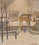 Jan Hillebrand Wijsmuller (1855-1925), winters dorpsgezicht met ophaalbrug, aquarel, r.o. gesigneerd, 25 × 22 cm