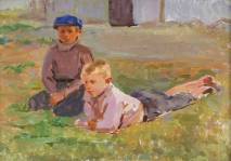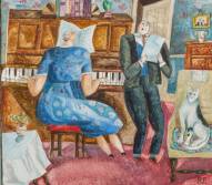 Olga Titova (1937-2017), 'Vrienden', olieverf op karton, verso gesigneerd en gedateerd 1958, circa 24 × 35 cm, herkomst: Gallery NR50, Amsterdam, 2005