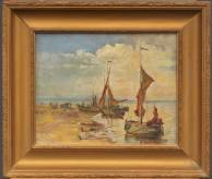 Hollandse School: bootjes aan de oever, marouflé, l.o. gesigneerd M. Klaassen, 32 × 40 cm