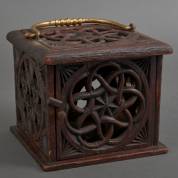 Gesneden eiken stoof met knoop- en kerfsnededecor, 19e eeuw, 18 × 20 × 20 cm