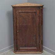 Naaldhouten ééndeurs hoekkastje met groengeschilderd interieur, 19e eeuw, 98 × 63 × 44 cm