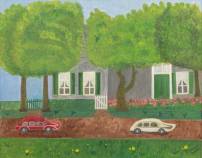 Anna Maria Zomer (1899-1970), 'Huisje A Pauw' olieverf op doek, r.o. gesigneerd en op label verso gedateerd 1966, 40 × 50 cm