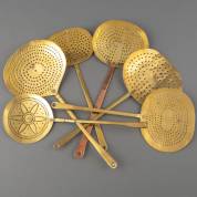 Zes diverse messing en koperen schuimspanen -enkele restauraties-