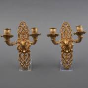 Paar verguld bronzen tweelichts wandappliques met acanthusbladdecor, tweede helft 19e eeuw, 24 × 18 × 14 cm