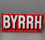 Geëmailleerd reclamebord: 'Byrrh, vin de liqueur au quinquina' -defecten, roestvorming-, 58 × 130 cm