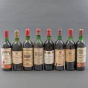 Acht diverse flessen rode wijn, alle Saint-Émilion, 1974-1988 -vulniveau's: mid shoulder en hoger-