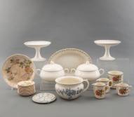Diverse aardewerk en porseleinen serviesdelen, waaronder: twee schaaltjes en drie kannetjes, decor Covent Garden, uitvoering Wedgwood, hoogte kannetje 10 cm