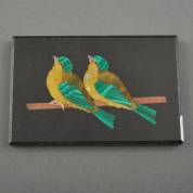 Natuurstenen mozaïek met malachiet: twee vogeltjes op een stok, 12 × 8 cm