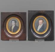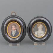 Twee miniatuurportretten: vrouw en een man, vroeg 19e eeuw -vrouw past niet goed in het lijstje-, circa 5,5 × 4,5 cm