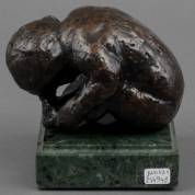 Renske Morks (1931), kindje, bronzen sculptuur op los marmeren sokkeltje, niet gesigneerd, 10 × 14 × 10 cm