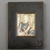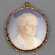 Miniatuurportret in verguld lijstje: oudere vrouw, 20e eeuw, 7,5 × 6,5 cm
