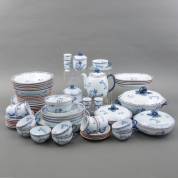 Porseleinen serviesgedeelte, decor 'Ostindia' / 'East Indies', uitvoering Rörstrand, Zweden, bestaande uit: zes dinerborden Ø 27 cm, zes diepe borden Ø 24 cm, acht dessertborden Ø 21 cm, negen eierdopjes, vier koffiekop-en-schotels, acht theekop-en-schotels, koffiepot en divers dienservies -samengesteld uit oudere en nieuwere delen-