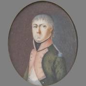 Miniatuurportret: man in groen uniform met rode kraag en revers, verso omschreven als 'Generaal Burnonville', vroeg 19e eeuw, 5 × 4 cm