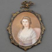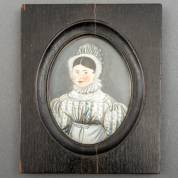 Miniatuurportret: vrouw met muts, gouache, 19e eeuw, 9,5 × 7,5 cm