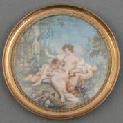 Miniatuurschildering: godin met cherubijn en twee duiven, 19e eeuw, Ø 6,5 cm