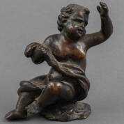 Bronzen beeld: zittende putto, barok, Vlaanderen, circa 1700, 11,5 cm