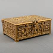 Messing sieradenkistje met rijk bladerdecor in reliëf, art nouveau, 5 × 13 × 9 cm