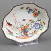 Gecontourneerd porseleinen schaaltje met Kakiemon-decor en 1e gehalte zilveren rand, uitvoering Meissen, 20e eeuw, 3 × 15 × 12 cm