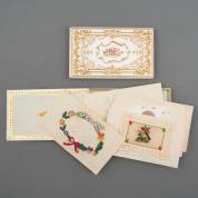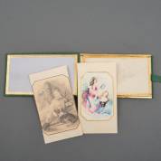 Album amicorum. Oblong 8vo. Moiré zijden doosje, goudkleurige fileten rond de platten en op de rug, oorspr. kartonnen hoesje. Met 15 bijdragen (Vlissingen 1840-1848), waaronder 3 aquarellen en 2 potloodtekeningen