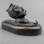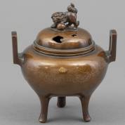 Ronde bronzen wierookbrander op drie hoge poten, het deksel bekroond door Shishi-leeuw, 13,5 × 12,5 × 9 cm