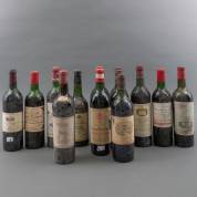 Dertien diverse flessen rode wijn, alle linker oever Bordeaux -vulniveau's wisselend-