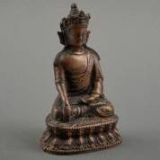 Bronzen of koperen beeld: zittende Boeddha, 20e eeuw, hoogte 13 cm