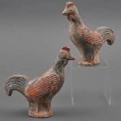 Twee Chinese gepolychromeerde aardewerk haantjes, Ming-stijl, modern, 17 × 18 × 7 cm