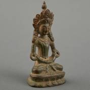 Groengepatineerd bronzen beeldje: zittende Boeddha, vermoedelijk modern, hoogte 10 cm