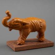 Geelgeglazuurd aardewerk beeldje van een olifant, China, vermoedelijk 18e eeuw -slurf gelijmd-, op los houten basementje, 9,5 × 13 × 4,5 cm