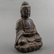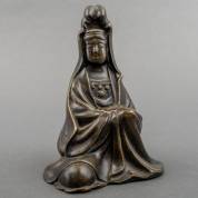Bruingepatineerd bronzen beeld: zittende Guanyin, modern, hoogte 13,5 cm