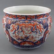 Grote Japans porseleinen Imari cache-pot met vogel- en plantendecor, 20e eeuw, Ø 31 cm