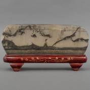 Chinese 'Scholar's rock', met opschrift, staande op houten basement, 20e eeuw, 20 × 37 cm