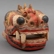 Beschilderd houten masker van de apengod Hanuman, Bali, Indonesië -slijtage-, 22 × 19,5 × 19 cm