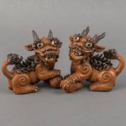 Paar Chinese bizen steengoed qilin's, gemerkt, hoogte 12 cm