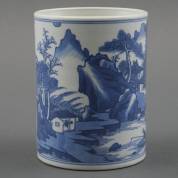 Chinees porseleinen penselenpot met blauw-wit decor, modern, 14 × Ø 10,5 cm