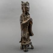 Chinees bronzen beeld: staande wijsgeer, op voet, Ming-stijl, modern -restauraties-, hoogte 29,5 cm