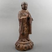 Gietijzeren beeld: staande monnik op lotustroon, China -gecorrodeerd-, hoogte 28 cm