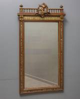 Spiegel in vergulde en gehoute lijst, eind 19e/20e eeuw -defecten aan lijst-, 151 × 80 cm