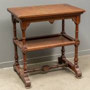 Eiken wandtafeltje met etagère en gedraaide poten, Hollandse renaissance-stijl, eind 19e/begin 20e eeuw -vlekken in afwerking-, 76 × 73 × 48 cm