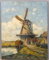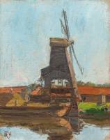 Martinus Jacobus Nefkens (1866-1941), molen bij het water, olieverf op doek, r.o. gesigneerd -gaatje links onderin, beetje verfverlies, craquelé-, 50 × 40 cm
