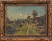 Gerhard 'Gerrit' Haverkamp (1872-1926), molen langs een vaart, marouflé, l.o. gemonogrammeerd en gedateerd '95 -op plekken dun in de verf-, 40 × 31,5 cm