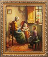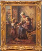Hollandse School: moeder met kinderen, olieverf op doek, l.o. gesigneerd H. Endlich, 20e eeuw, 50 × 40 cm