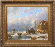 Nanne Balyon (1960), wintergezicht in 19e-eeuwse stijl, olieverf op doek, r.o. gesigneerd, 49 × 58,5 cm