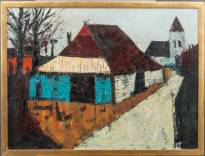 Ciano Siewert (1942): dorpsstraat, acrylverf op doek, verso gesigneerd, 59 × 79 cm