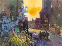Willy Everhardus van den Berg (1921-2001), stadsgezicht met figuren, olieverf op doek, r.o. gesigneerd, 60 × 80 cm, daarbij boek: 'Will: Berg, Kunstenaar in beeld'