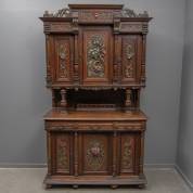 Eiken buffetkast met gesneden en gepolychromeerde decors, circa 1900, 239 × 140 × 52 cm