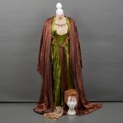 Kleding en accessoires voor het personage Jonkvrouwe Elize barones van Ittersum, eerste hofdame van Koningin Emma, in de voorstelling Koning Emma Redster van Oranje, Akte 3, 1912, van actrice Nel Kars -programmaboekje bijgevoegd-