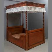 Mahonie hemelbed met getorste zuilen, tweede helft 19e eeuw -gebruikssporen, profielen langs hemel met krimpnaden-, matrasmaat 190 × 135 cm