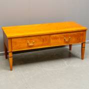 Kersenhouten wand/salontafel met twee lades, staande op rechte poten, eind 20e eeuw, 48 × 112 × 45 cm